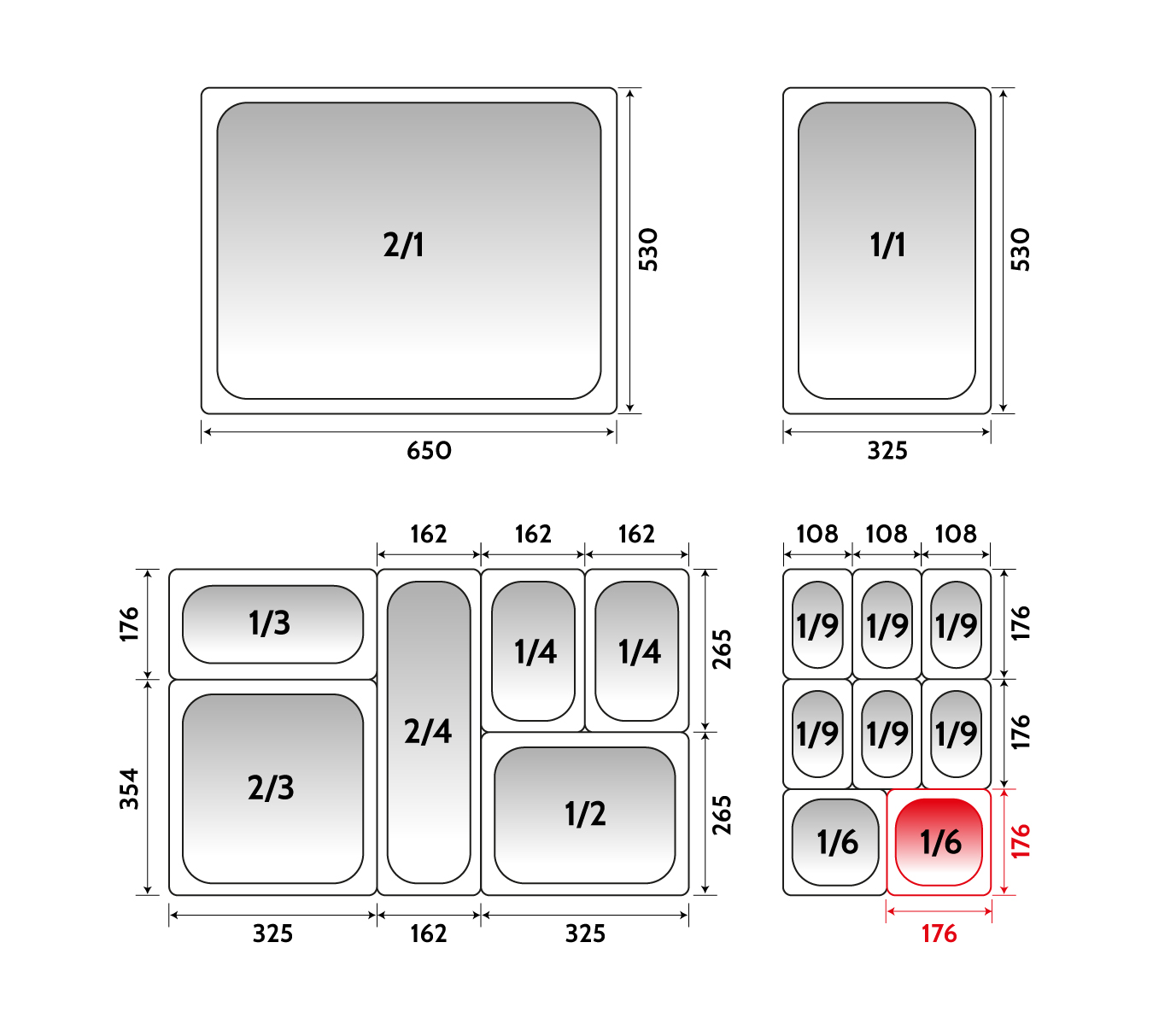 Depósito gastronorm 1/6 6.5cm acero inoxidable 0.6mm Big Chef