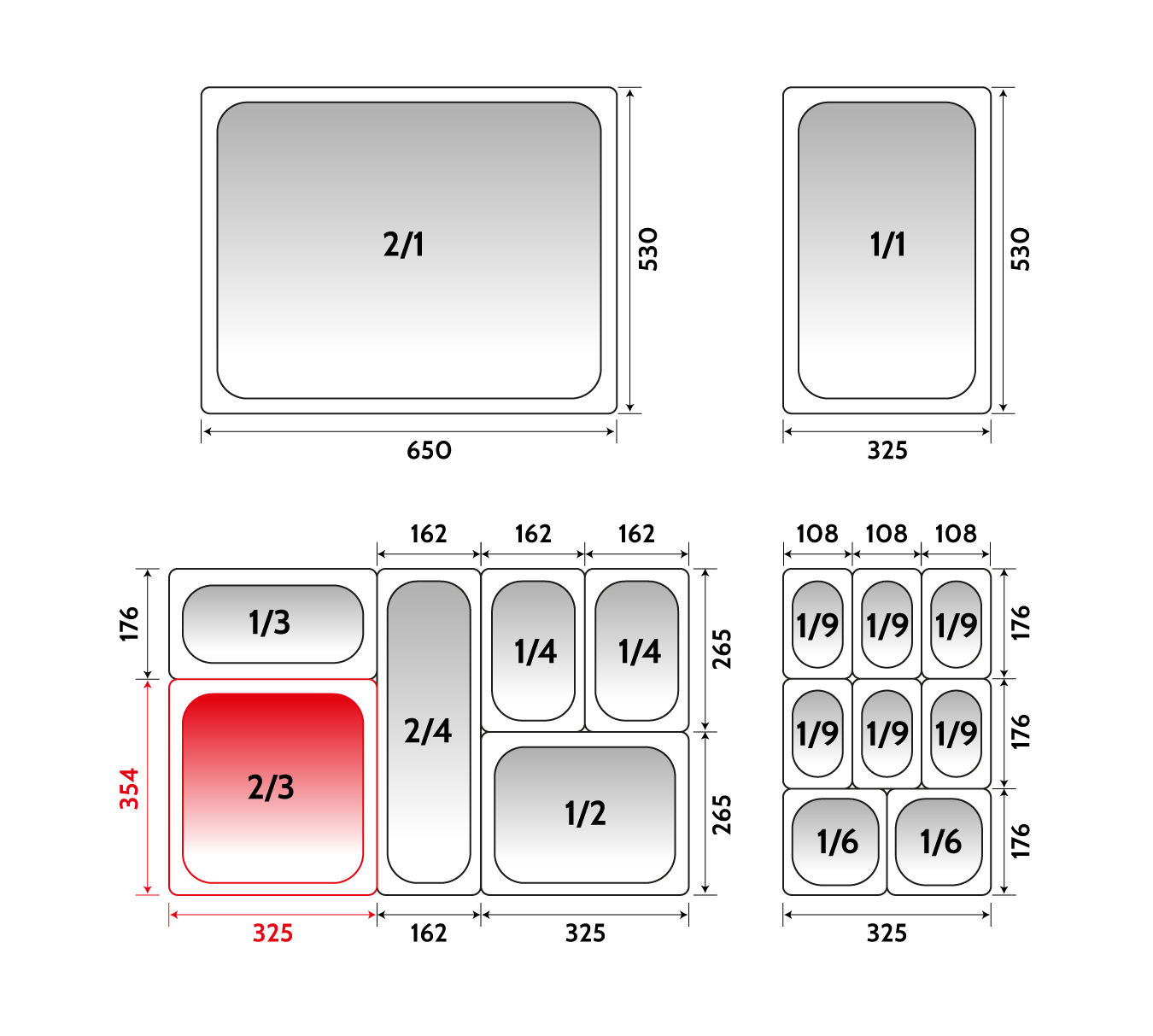Depósito gastronorm 2/3 10cm acero inoxidable 0.6mm Big Chef