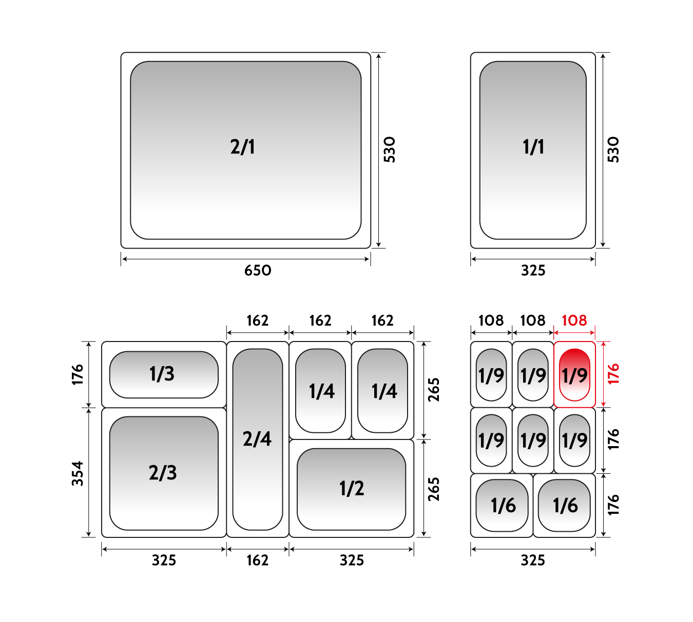 Depósito gastronorm 1/9 10cm acero inoxidable 0.6mm Big Chef
